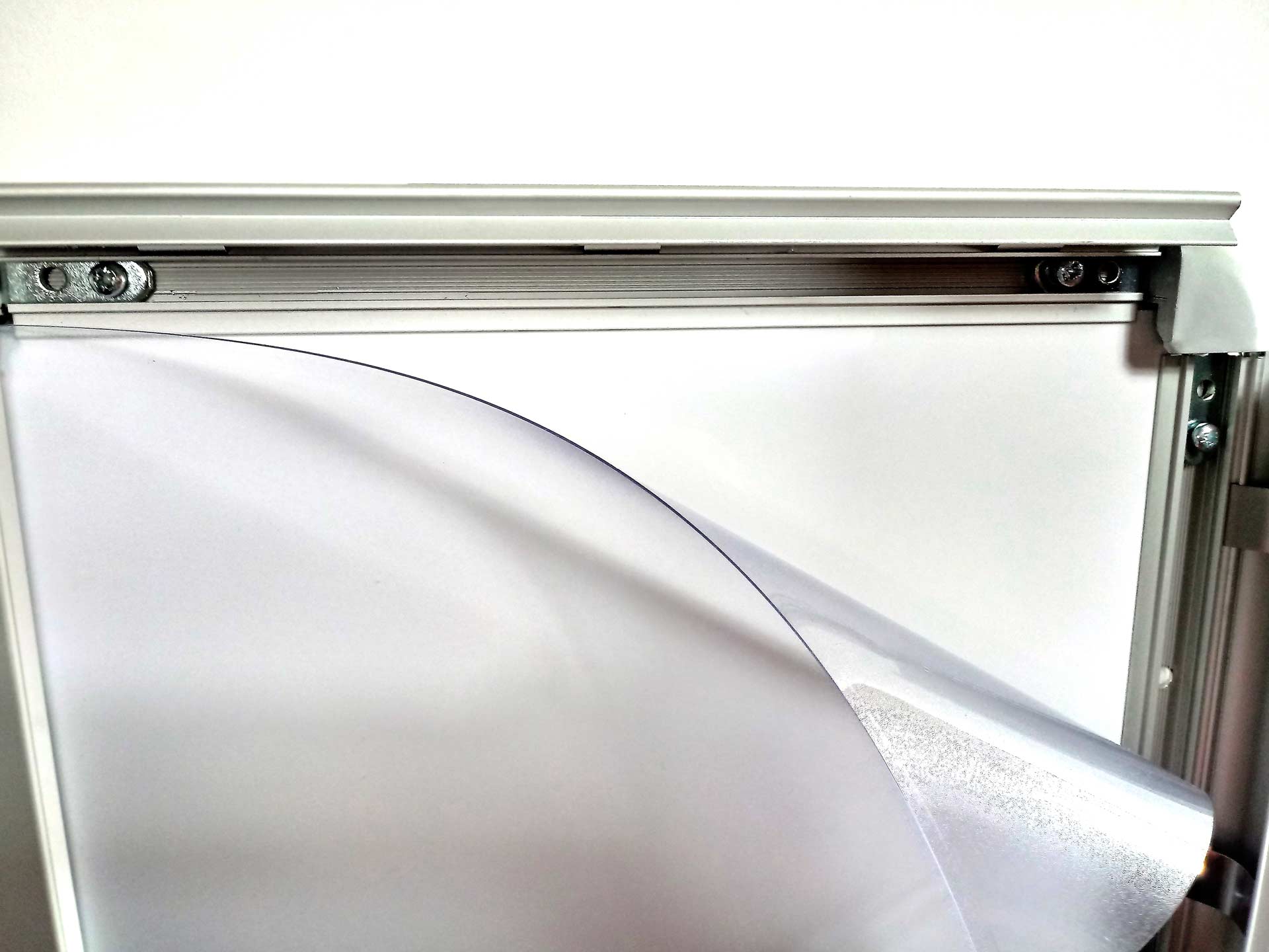 Folia zabezpieczająca o grubości 0,4 mm to podstawowa folia, która znajduje się we wszystkich potykaczach i stojakach, które wykorzystują tablice zatrzaskowe lub ramki aluminiowe. Jej zadaniem jest ochrona plakatu przed uszkodzeniem oraz przytrzymywanie plakatu w ramie.