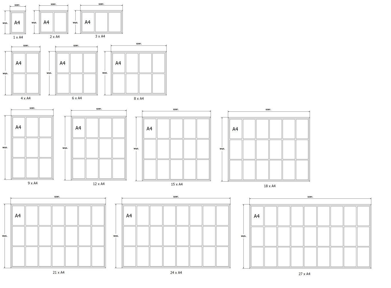 4xA4, 6xA4, 8xA4, 9xA4, 12xA4, 15xA4, 18xA4, 21xA4, 24xA4, 27xA4