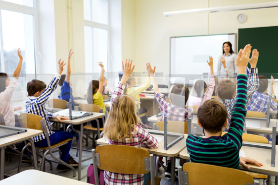 Osłona na biurko, osłona na ławkę szkolną dla uczniów. Jest to rodzaj przegrody, który może być rozwiązaniem zapewniającym ochronę uczniom przed zarazkami przenoszonymi drogą kropelkową.