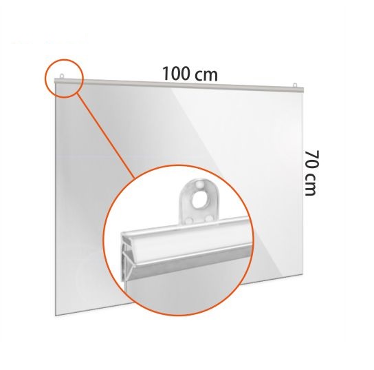 – materiał mocowany za pomocą listwy zaciskowej, znajdującej się na górze