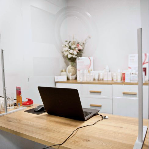 – regulowana osłona dla kosmetyczek, szyba ochronna przy kasie