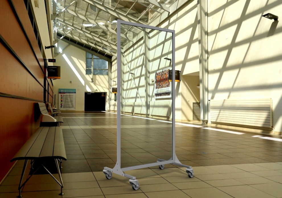 Parawan ochronny na kółkach. Estetyczne i trwałe wykonanie. Przeszklenie z bezbarwnej plexi o grubości 4mm. Wytrzymałe koła z hamulcem do łatwego przemieszczania parawanu.