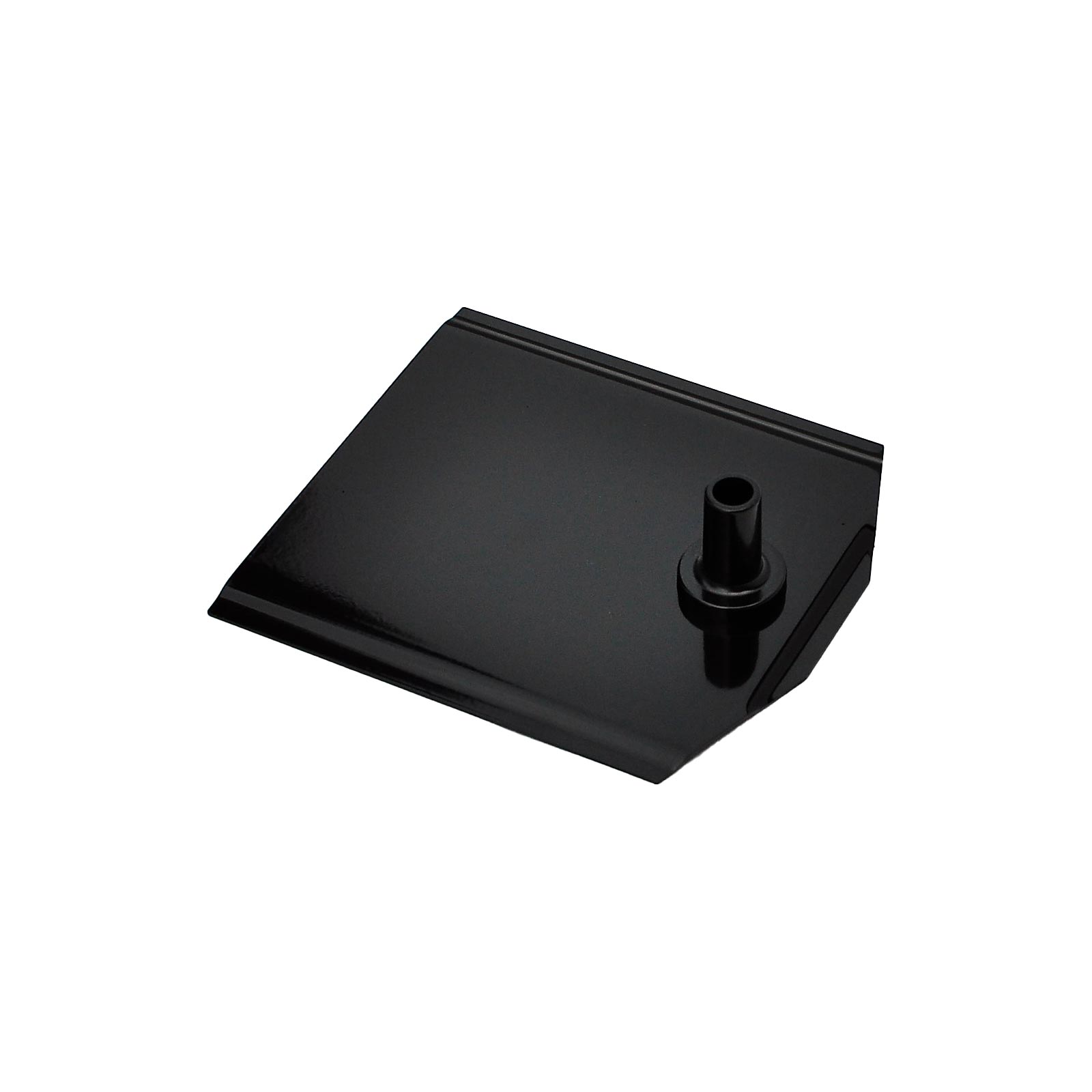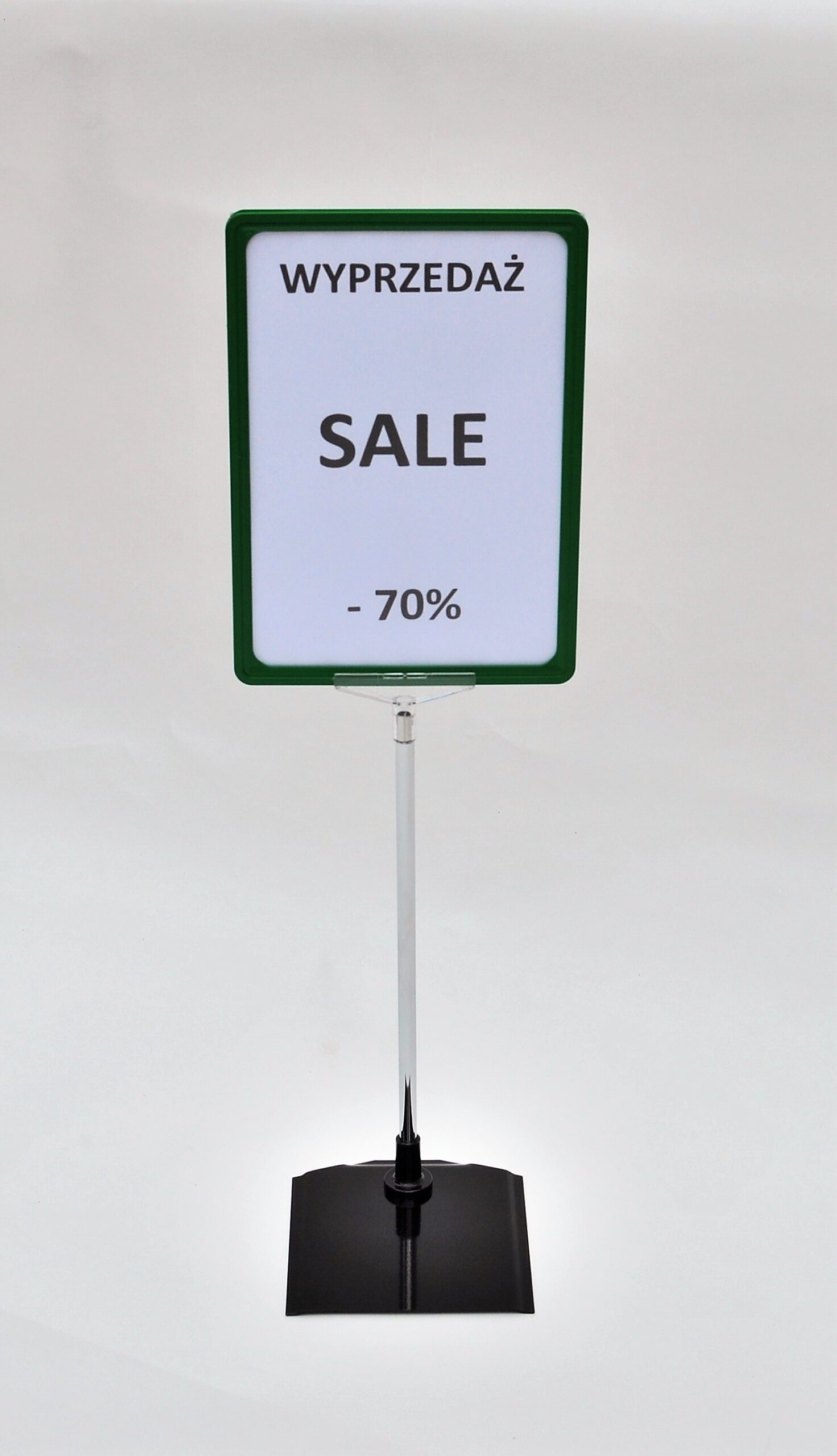 Czarna stalowa podstawa prostokątna z uchwytem przeznaczona jest do montażu rurek o średnicy 12 mm. Mogą to być rurki stalowe bądź aluminiowe, sztywne lub teleskopowe, zakończone adapterem na ramki plastikowe albo klamrą do umieszczanie plakatu lub kartki papieru.