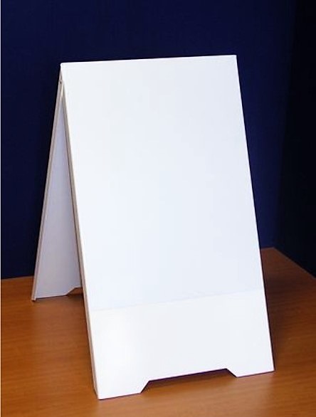 Potykacz PCV suchościeralny z białą blachą, po której możemy pisać markerami suchościeralnymi. Dodatkowo możliwość mocowania kartek, plakatów za pomocą magnesów.