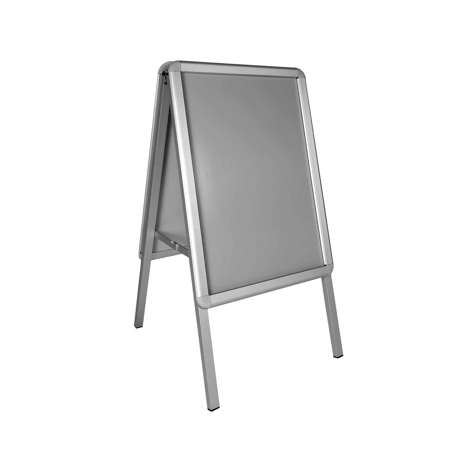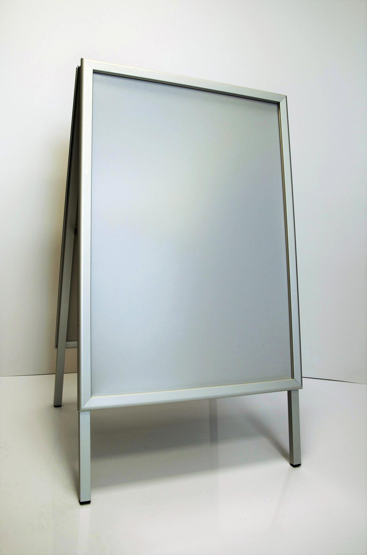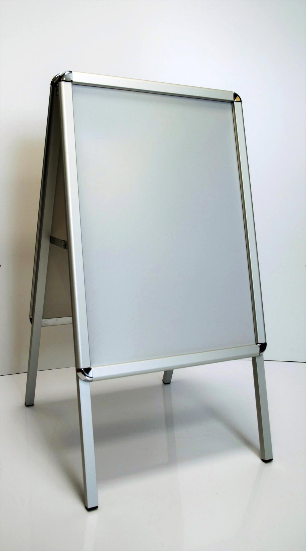 Dodatkowo, w związku dodaniem blachy, zwiększa się waga takiego potykacza przez co staje się bardziej stabilny. Nogi w stojaku typu „A” (inna nazwa potykacza) wykonane są z rury aluminiowej prostokątnej. Na końcach nóg znajdują się czarne zaślepki, które stabilizują stojak. Potykacz ten możemy używać zarówno wewnątrz pomieszczeń, jak i na zewnątrz. Pamiętać musimy jednak, że potykacz ten nie jest wodoszczelny. Przy mocniejszym deszczu istnieje ryzyko, iż poster który w nim umieścimy – szczególnie w jego dolnej części – będzie lekko mokry. Mając to na uwadze, sugerujemy wydruk plakatów reklamowych na specjalnych materiałach, nośnikach wodoodpornych. Jeszcze innym sposobem chroniącym plakat przed zamoczeniem może być uzbrojenie tablicy w gumową uszczelkę, która zminimalizuje ryzyko dostania się wody do wewnątrz.