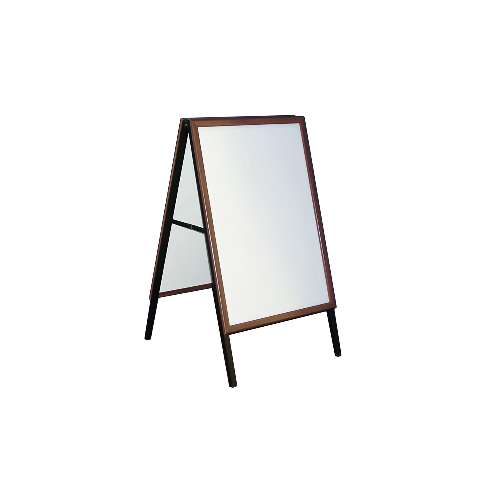 Tablice zatrzaskowe wykonane są z aluminium. Nogi lakierowane w kolorze czarnym dobrze współgrają z drewnopodobną tablicą.
