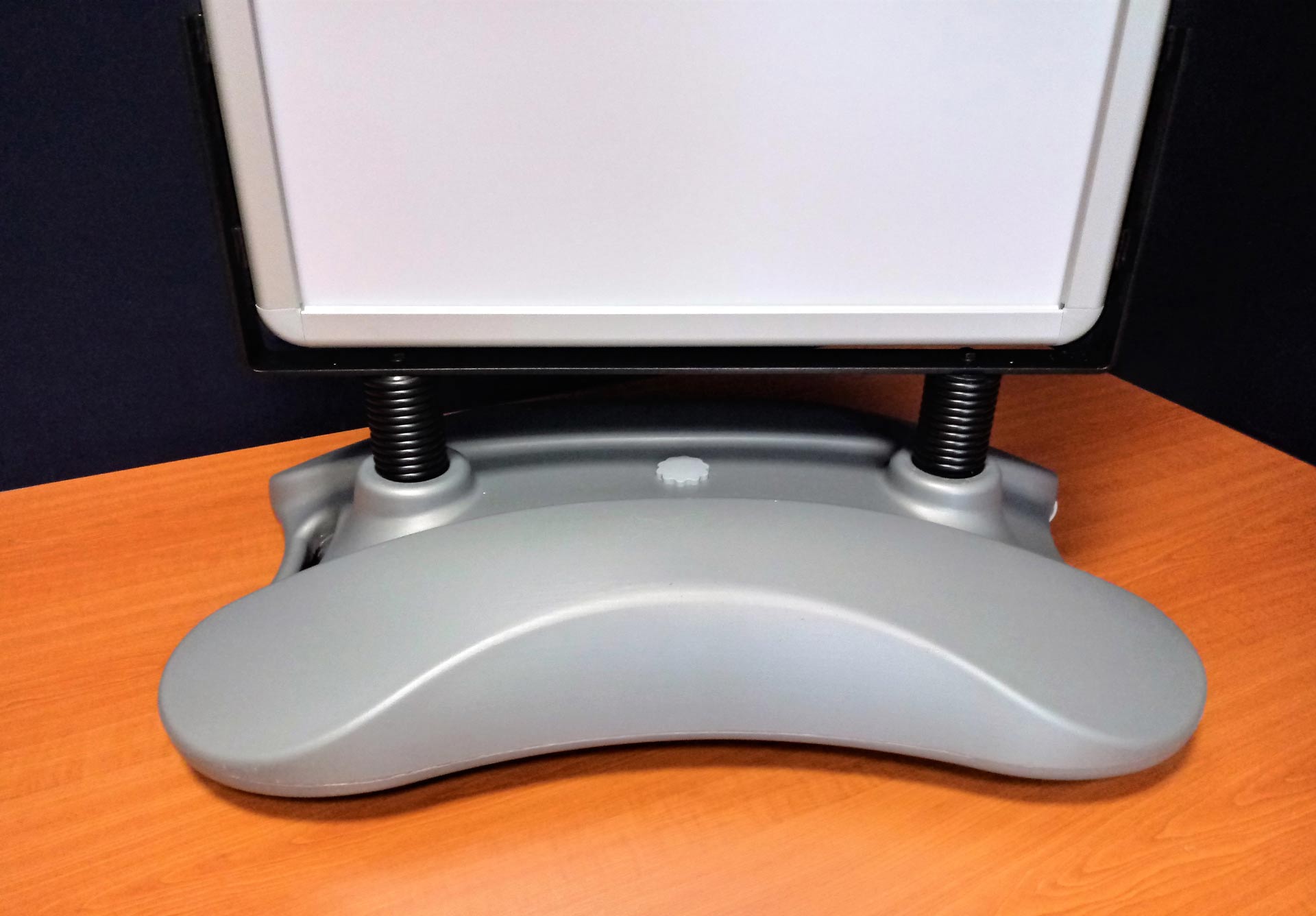Charakterystyczne komponenty w tym stojaku to podstawa z tworzywa sztucznego oraz stalowa konstrukcja ze sprężynami. Podstawę możemy wypełnić wodą lub piaskiem, aby zwiększyć ciężar potykacza. Im cięższy stojak, tym jest bardziej odporny na działanie silnego wiatru. Przy tak ciężkim stojaku ważne jest aby można go było w łatwy sposób przemieszczać, dlatego też podstawa wyposażona jest w uchwyt i dwa gumowe kółka. Do połączenia tablic przymykowych i sprężyn użyto stalowego elementu, aby był maksymalnie wytrzymały.
