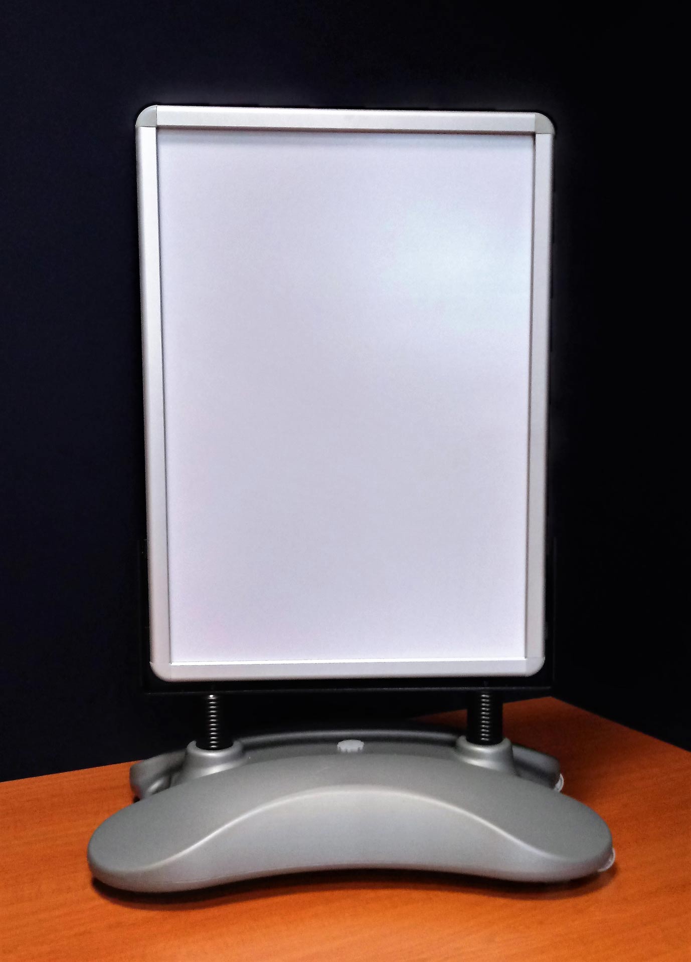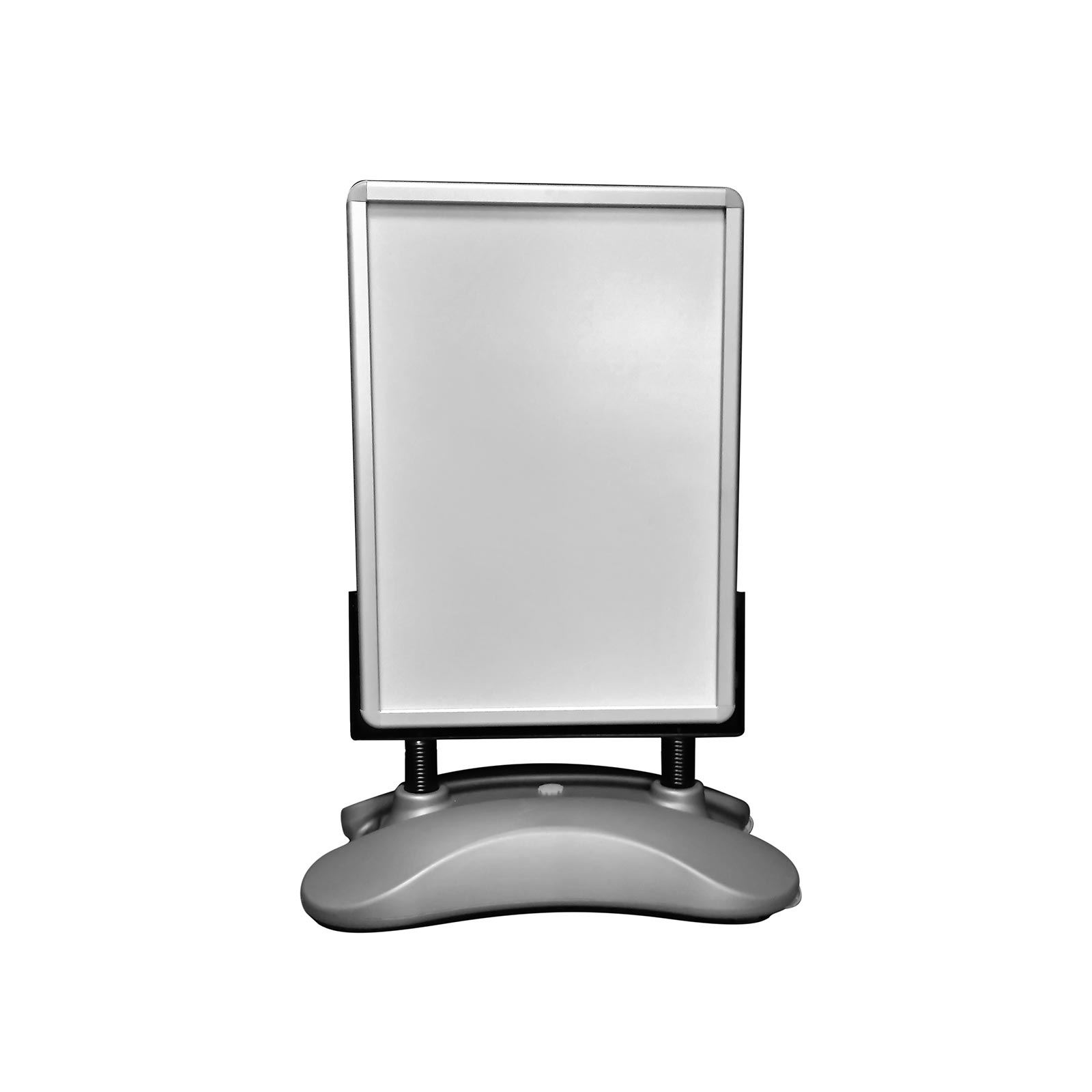 Potykacz waterbase to wysokiej jakości stojak na podstawie z tworzywa. Przeznaczony głównie do użytku zewnętrznego. Z uwagi na jego ciężar oraz użyte materiały, stosowany jest w miejscach szczególnie narażonych na działanie wiatru. Idealnie nadaje się na chodnik przed sklepem czy wejściem do galerii handlowej, pomocny także w wielu innych miejscach takich jak stacje benzynowe, markety budowlane czy centra ogrodnicze. Potykacz waterbase wykonany jest z wytrzymałych elementów, spasowanych ze sobą w sposób, który zapewnia jego stabilność. Potykacz z podstawą służy do ekspozycji dwustronnej plakatu. Plakaty umieszczamy w tablicach zatrzaskowych. Wymiana informacji jest łatwa i szybka.