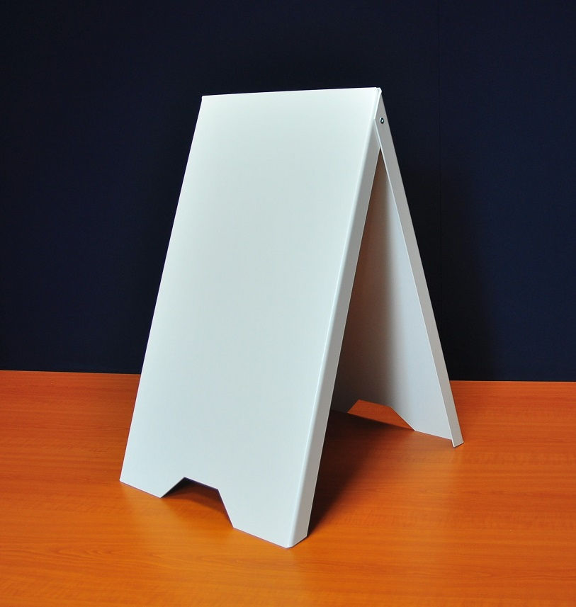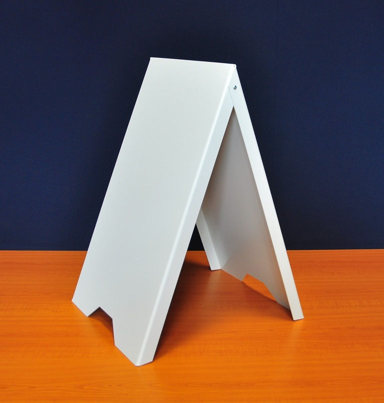 Potykacz z PCV wykonany jest z białego, twardego tworzywa PCV o grubości 3mm. Stojak ten jest stabilny. Umieszczamy na nim grafikę samoprzylepną, wykonaną na specjalnej folii. Folię można pokryć laminatem, który zabezpiecza przed uszkodzeniem oraz warunkami atmosferycznymi.
