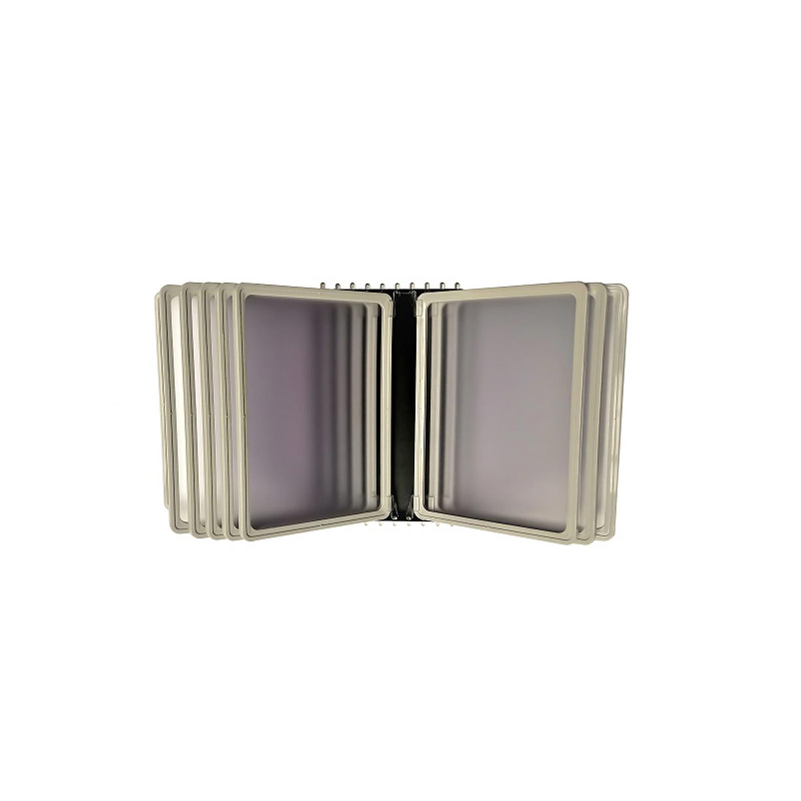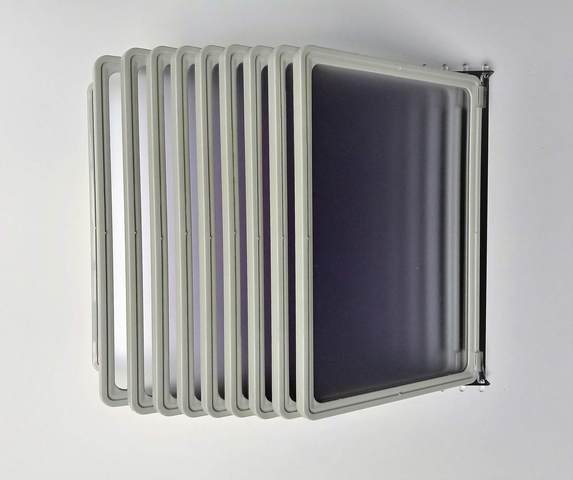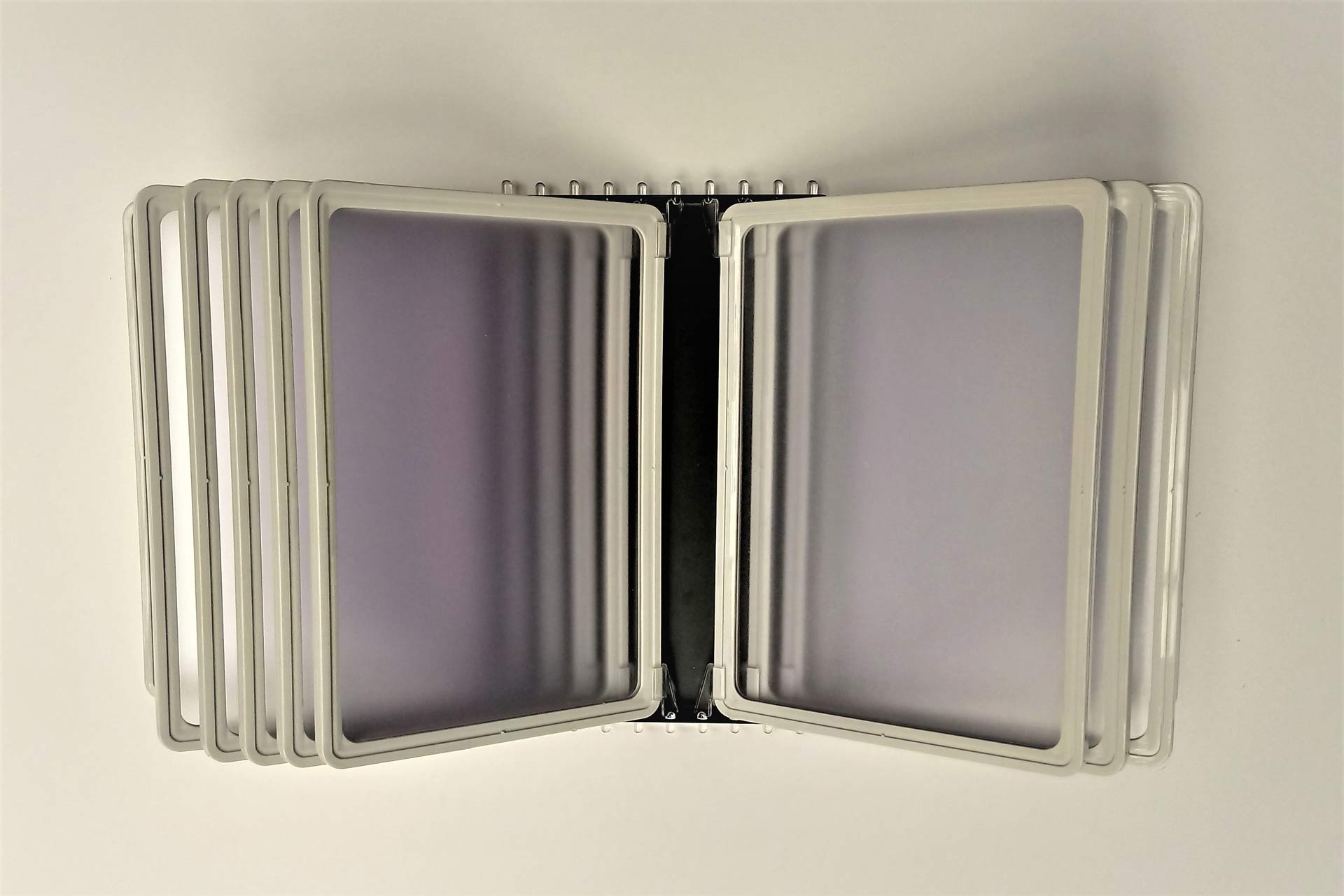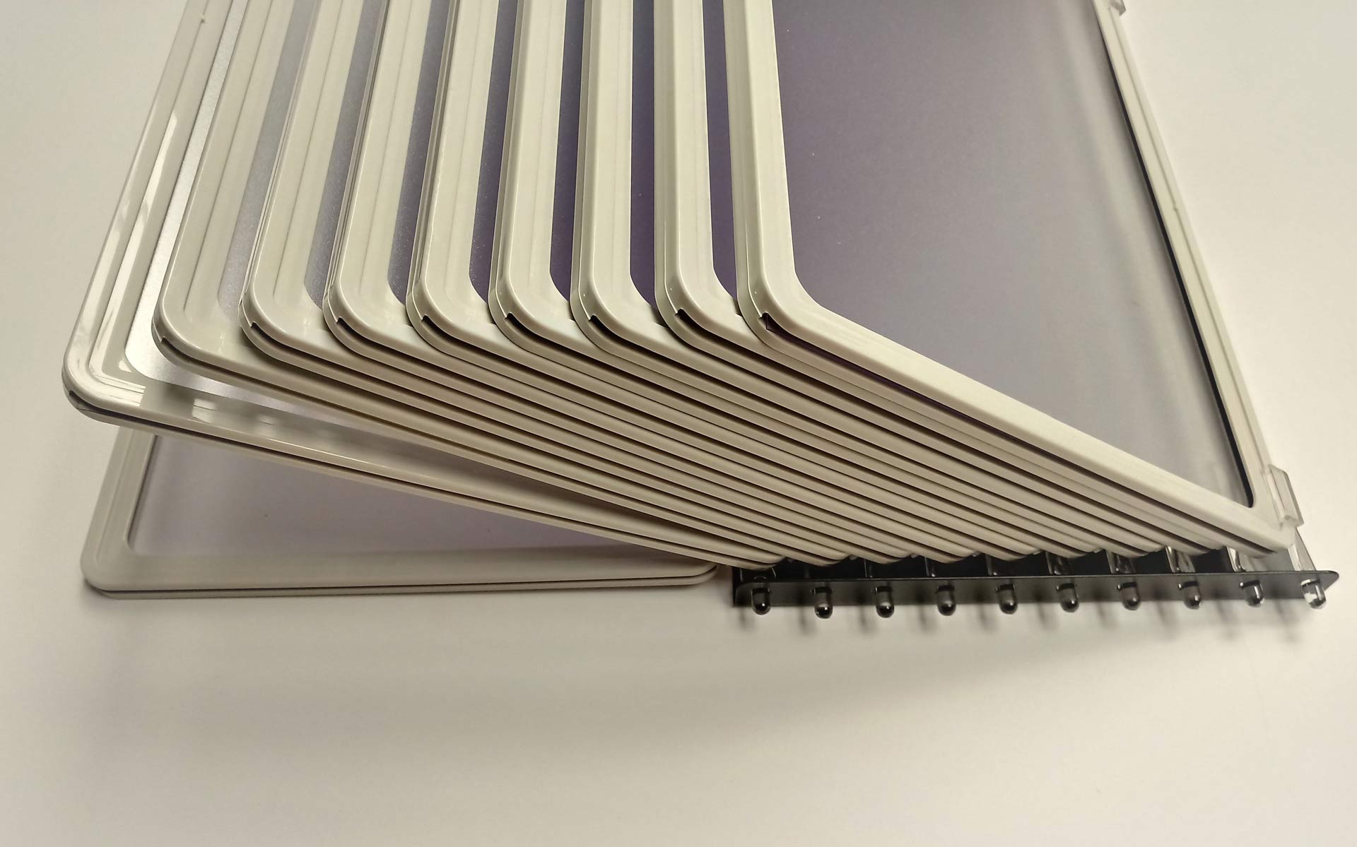Przeglądarka występuje w wersji z  5 lub 10 ramkami plastikowymi w formacie A4 lub A3. Ramki umieszczone na plastikowych klipsach możemy obracać. Każda ramka zawiera kieszeń ochronną z PCV antyrefleks. Kieszeń chroni przed zabrudzeniem i zniszczeniem zawartości.
