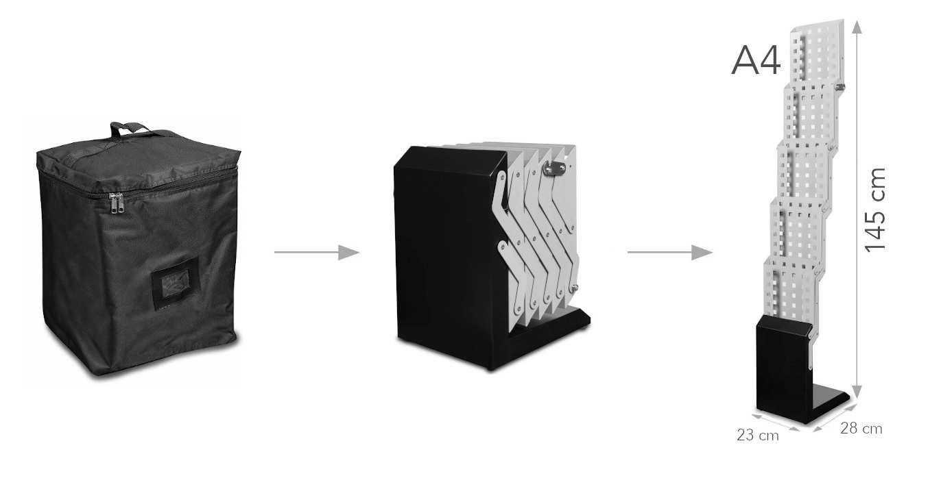 kompaktowa, lekka i składana konstrukcja pozwala na łatwy transport i przenoszenie
