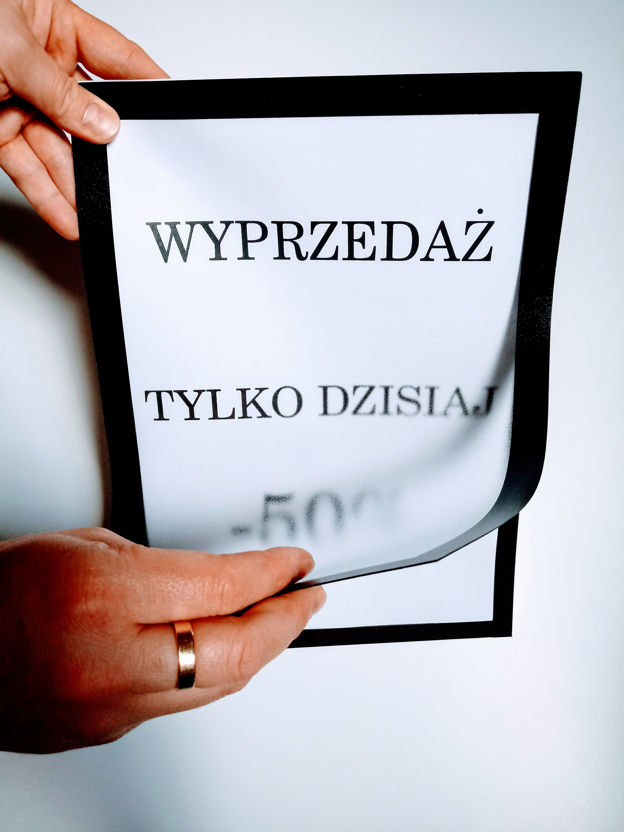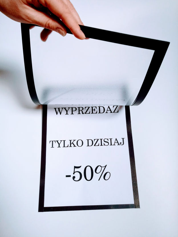 Po włożeniu plakatu, formatki te ściśle do siebie przylegają, tworząc zamkniętą i szczelną kieszeń. Co ciekawe, wykorzystanie taśmy magnetycznej sprawia, że możemy bez obaw otwierać i zamykać kieszeń – w sposób bezproblemowy – przez długi czas.