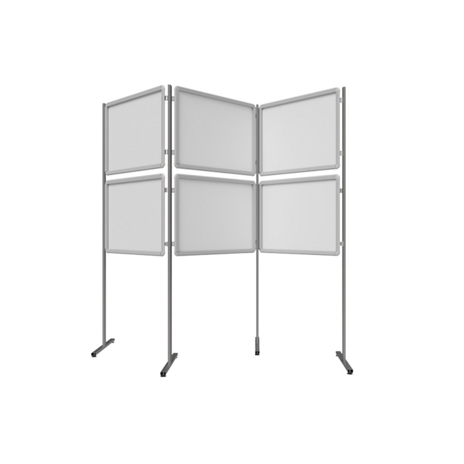 Ścianka wystawiennicza piętrowa pozioma ruchoma. Do prezentacji plakatów służą tablice zatrzaskowe OWZ zamocowane w poziomie. Ścianka posiada zawiasy, dzięki którym możemy ją ustawić pod różnym kątem.