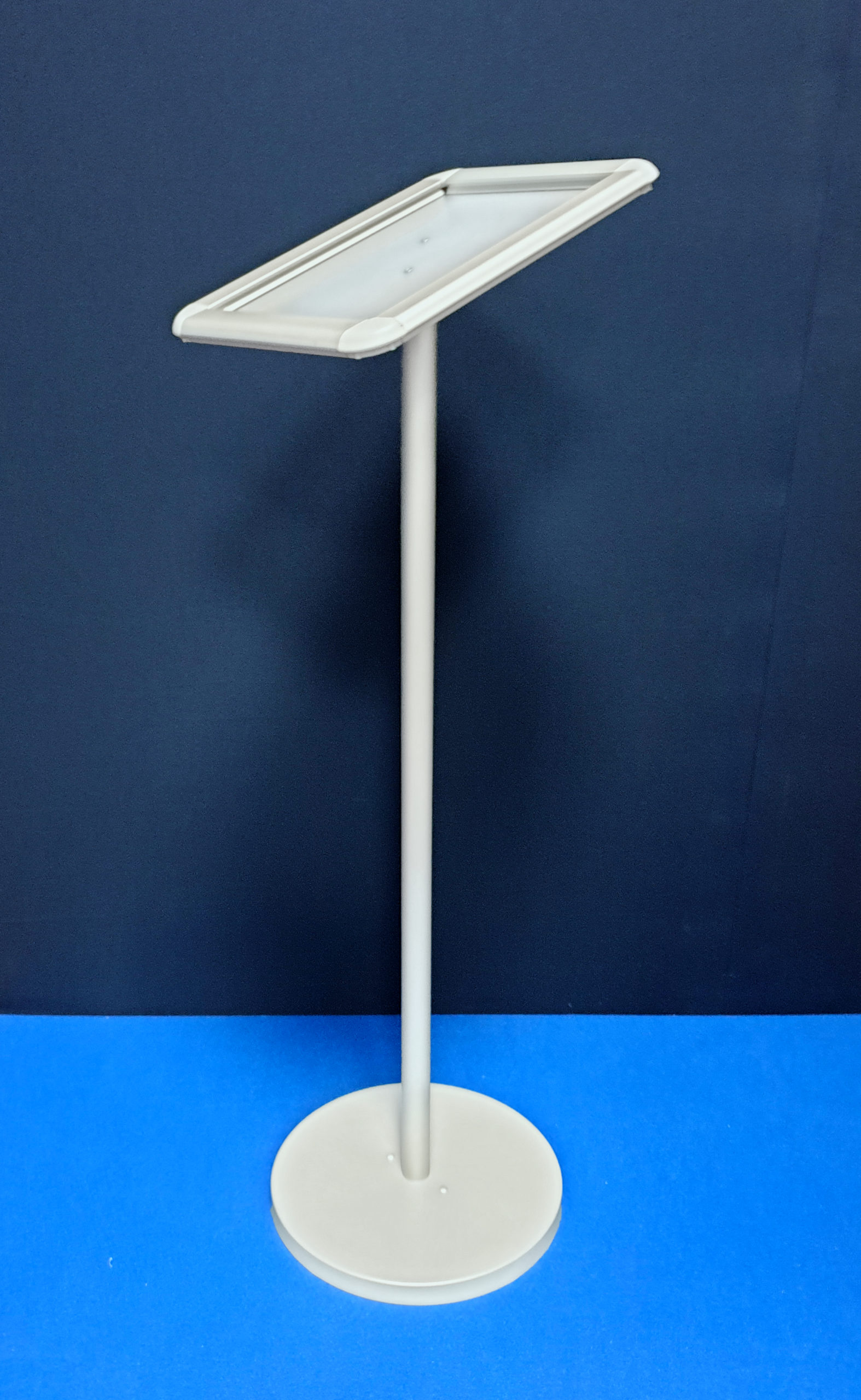 Stojak informacyjny z tablicą ustawioną pod kątem