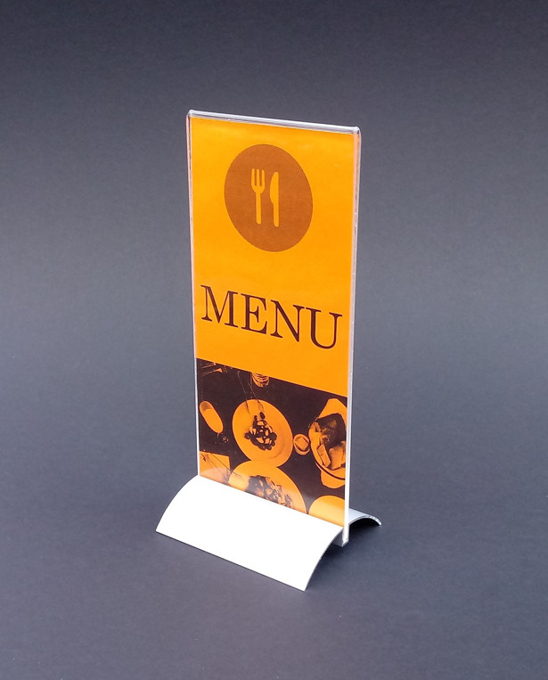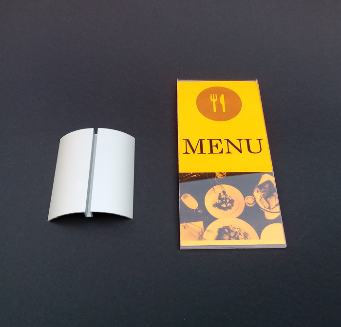 Lubisz dobrze wyglądające produkty? Jeśli tak, to mamy dla Ciebie propozycję. To nowoczesny stojak menu na aluminiowej podstawie. Świetnie się prezentuje na blacie w recepcji lub stoliku w restauracji. Składa się z dwóch elementów. Pierwszy to kieszeń z plexi bezbarwnej. Drugi to półokrągła, stabilna aluminiowa podstawka. Aby włożyć kartkę, delikatnie rozchyl kieszonkę z akrylu. Następnie włóż ją do szczeliny i gotowe.