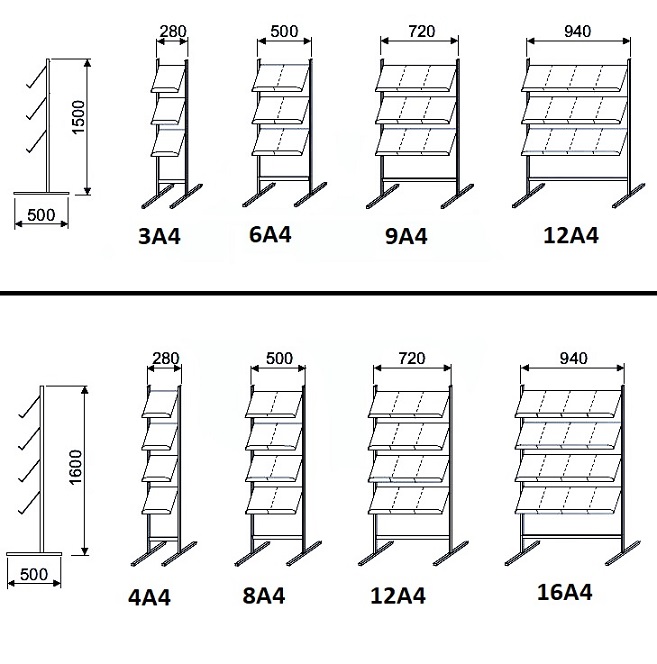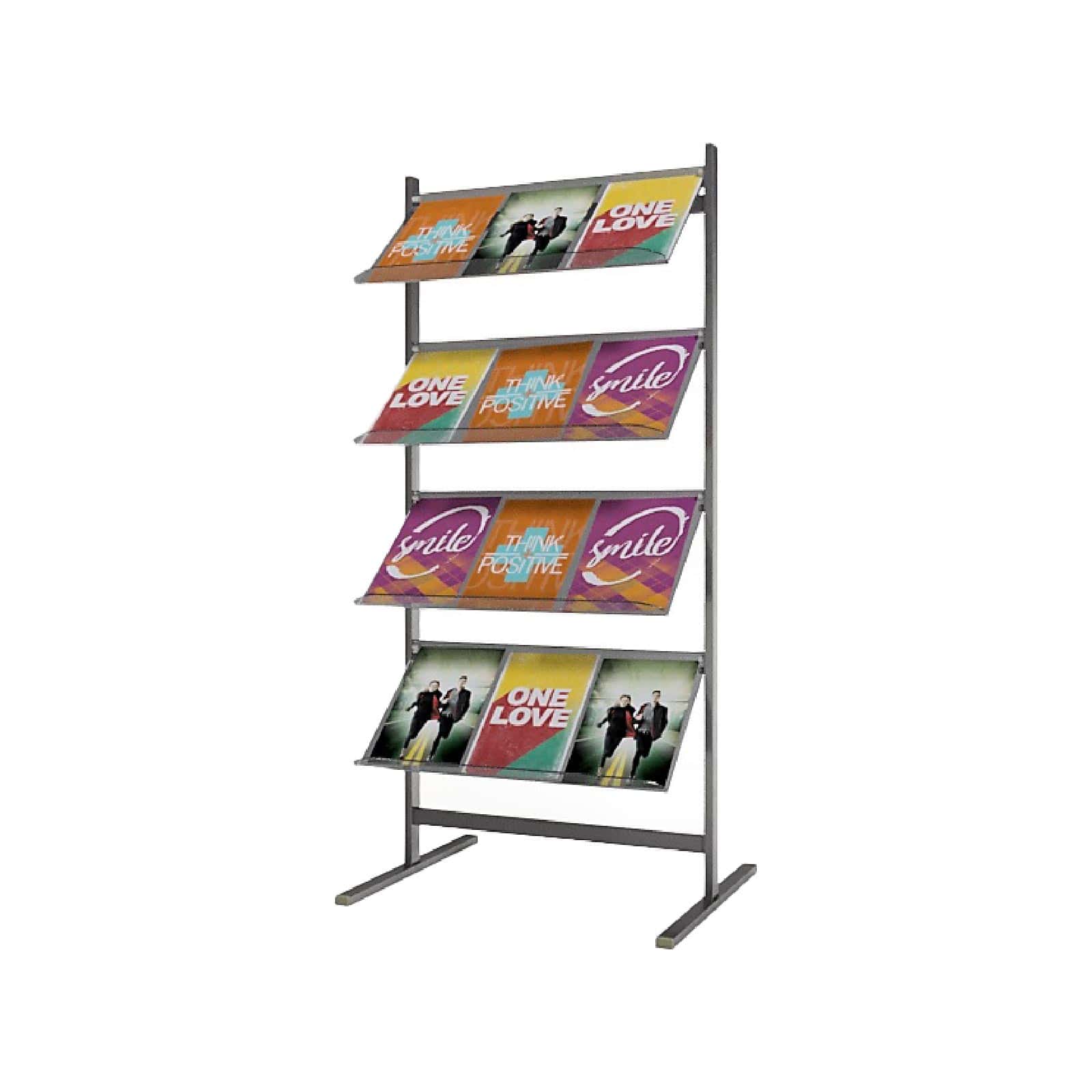 • stojak podłogowy na foldery i katalogi A4 z półkami z plexi