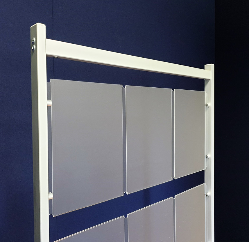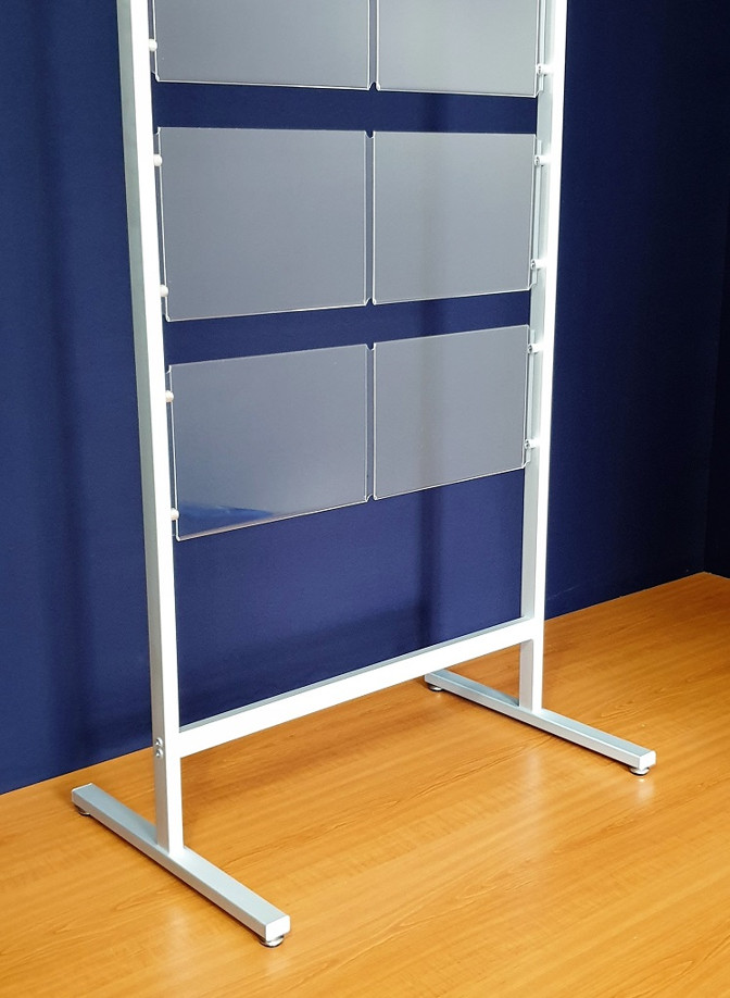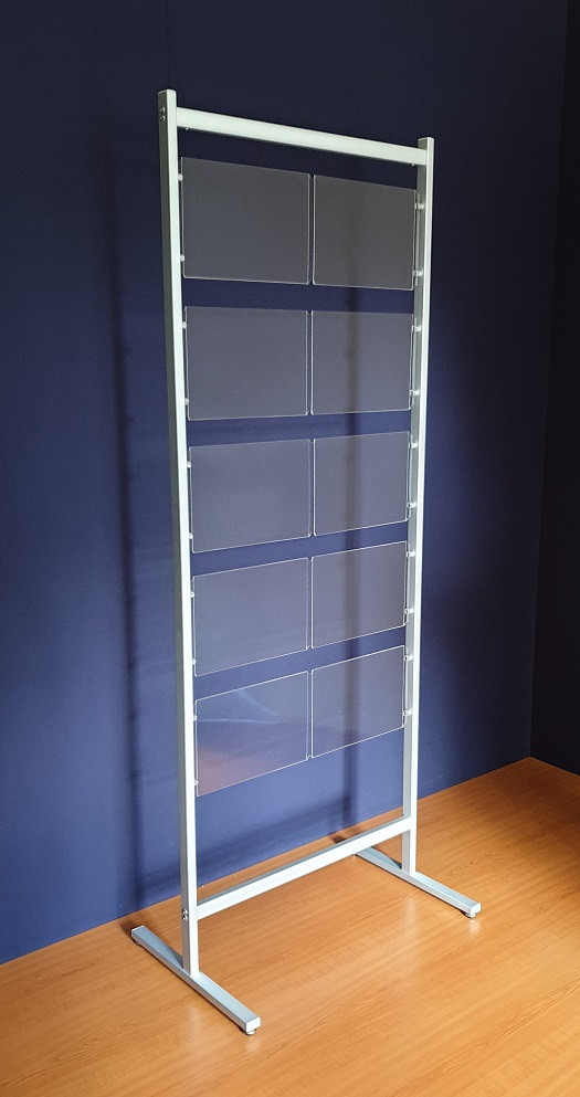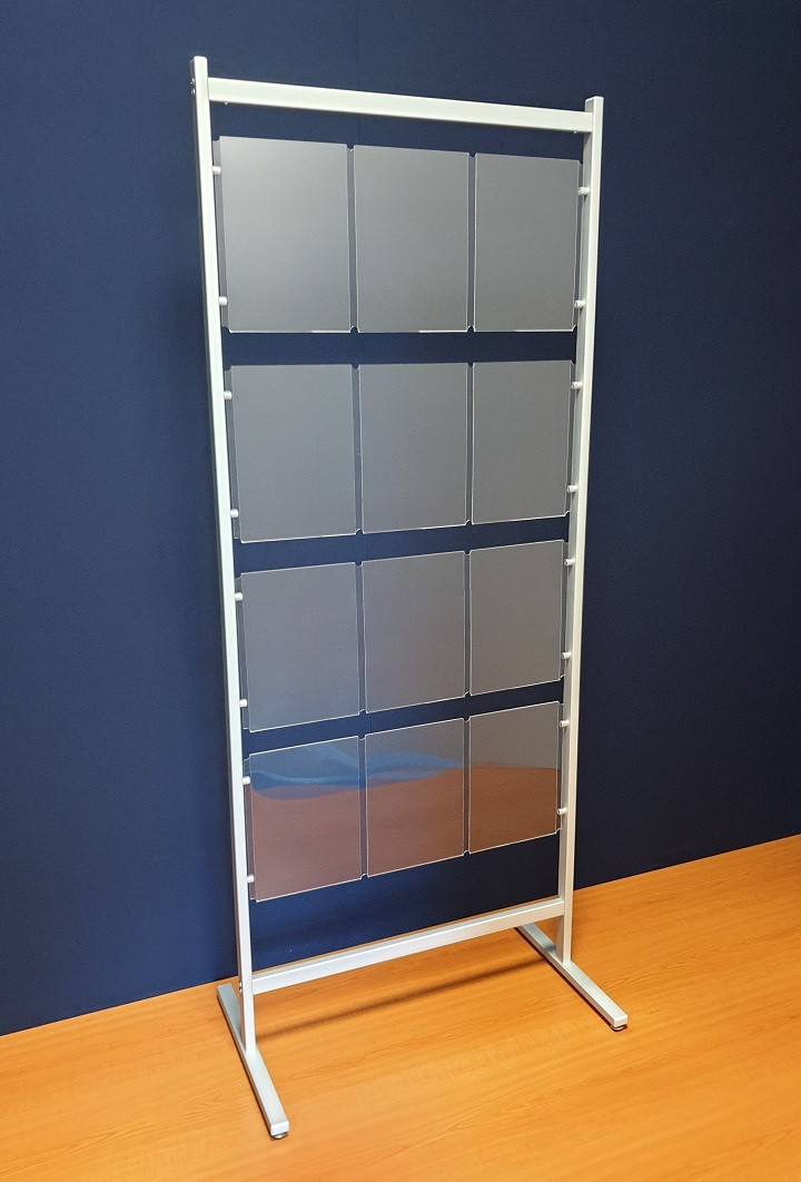 Stojak na oferty, stojak z kieszeniami plexi A4 mocowanymi na kołkach. Bardzo elegancki stojak informacyjny na kartki w formacie A4. Kieszenie mocowane w pionie lub poziomie.