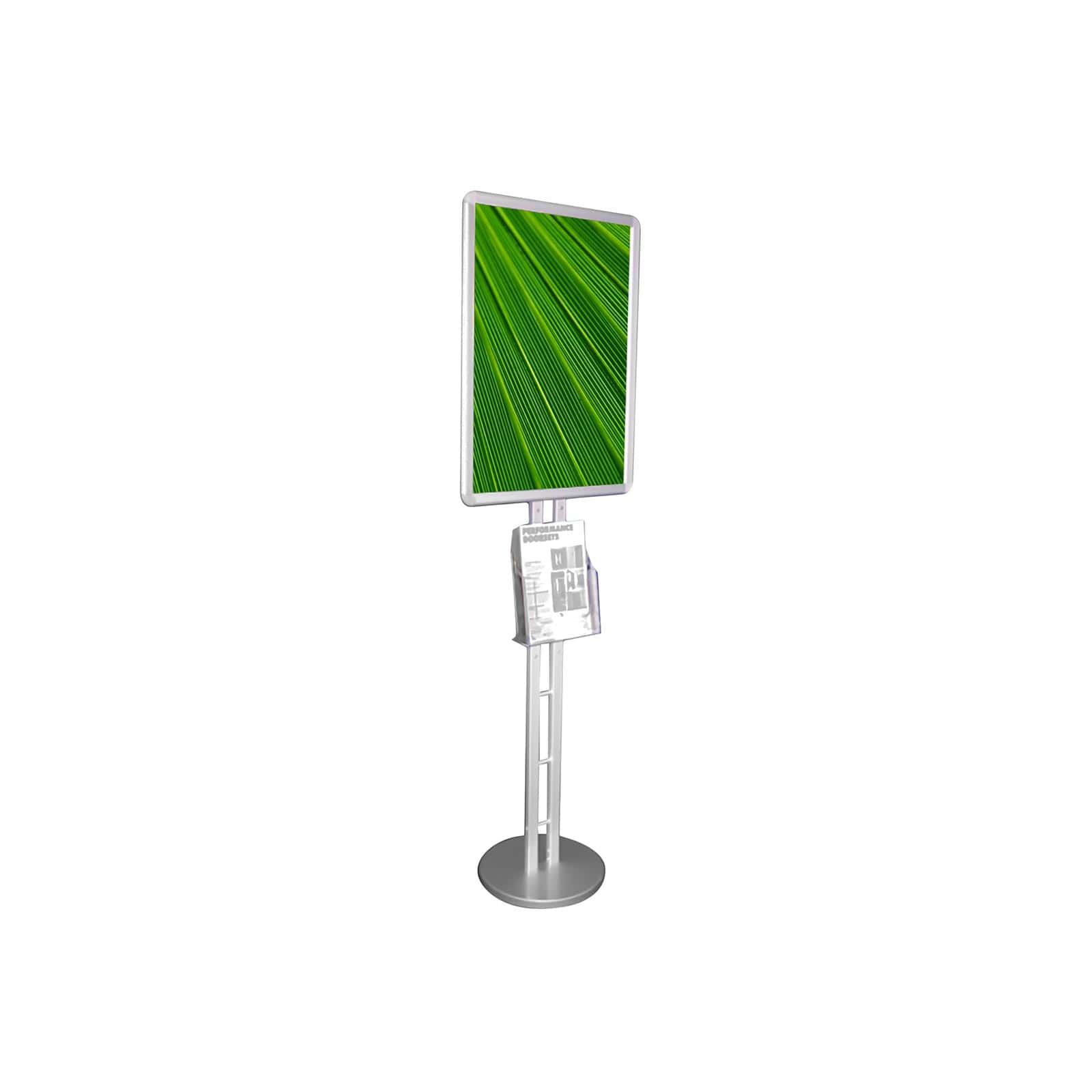 Stojak na plakat z kieszenią, to aluminiowy stojak podłogowy, w którym umieścimy jeden lub dwa plakaty w tablicy zatrzaskowej. Wyposażony dodatkowo w kieszeń z plexi, w której umieścimy kilka lub kilkanaście ulotek reklamowych i folderów. Stojak możemy postawić przed wejściem do sklepu, butiku lub innego punktu usługowego, zachęcając tym samym przechodniów do odwiedzenia naszego miejsca.