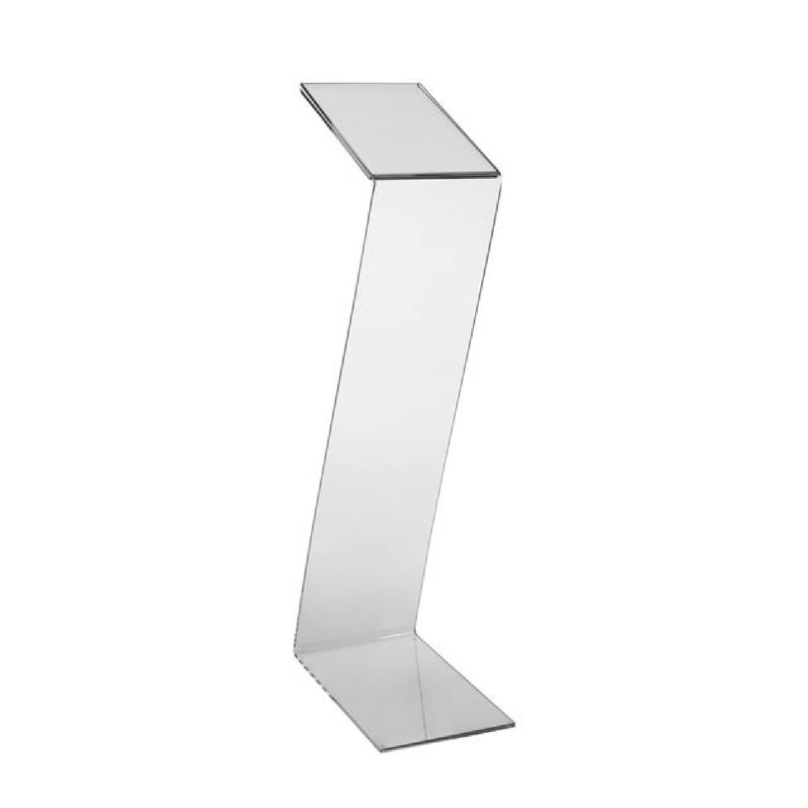 Szykowny stojak podłogowy, który zwraca na siebie uwagę. Wykonany z plexi. W górnej części znajduje się szczelina na kartkę A4.