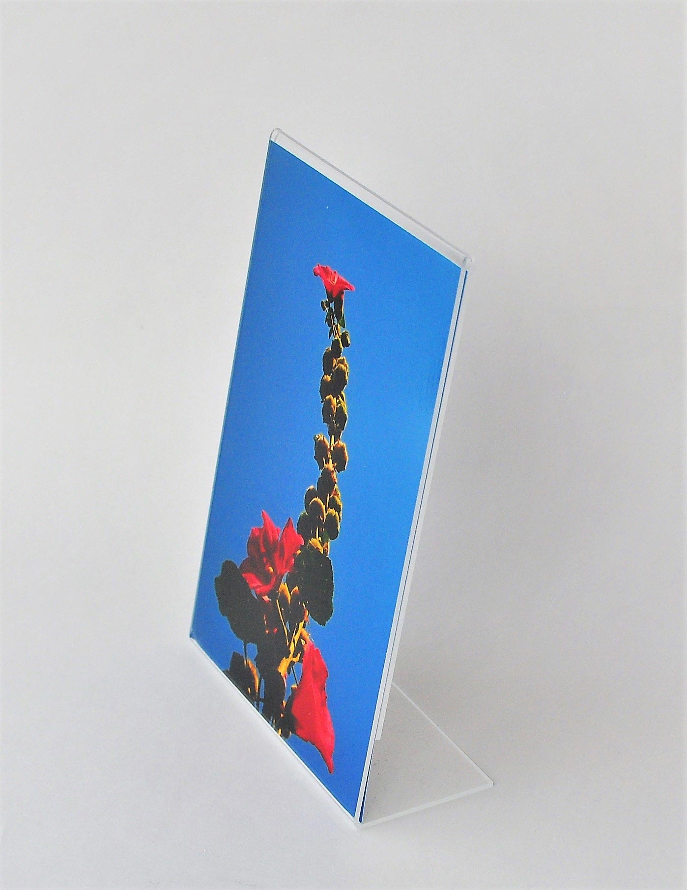 Stojak typu L pochyły występuje w wersji pionowej i poziomej, w formatach 1/3A4, A6, A5, A4 i A3 oraz innych. Stojaki w formacie A3 wykonane są z plexi o grubości 3 mm.
