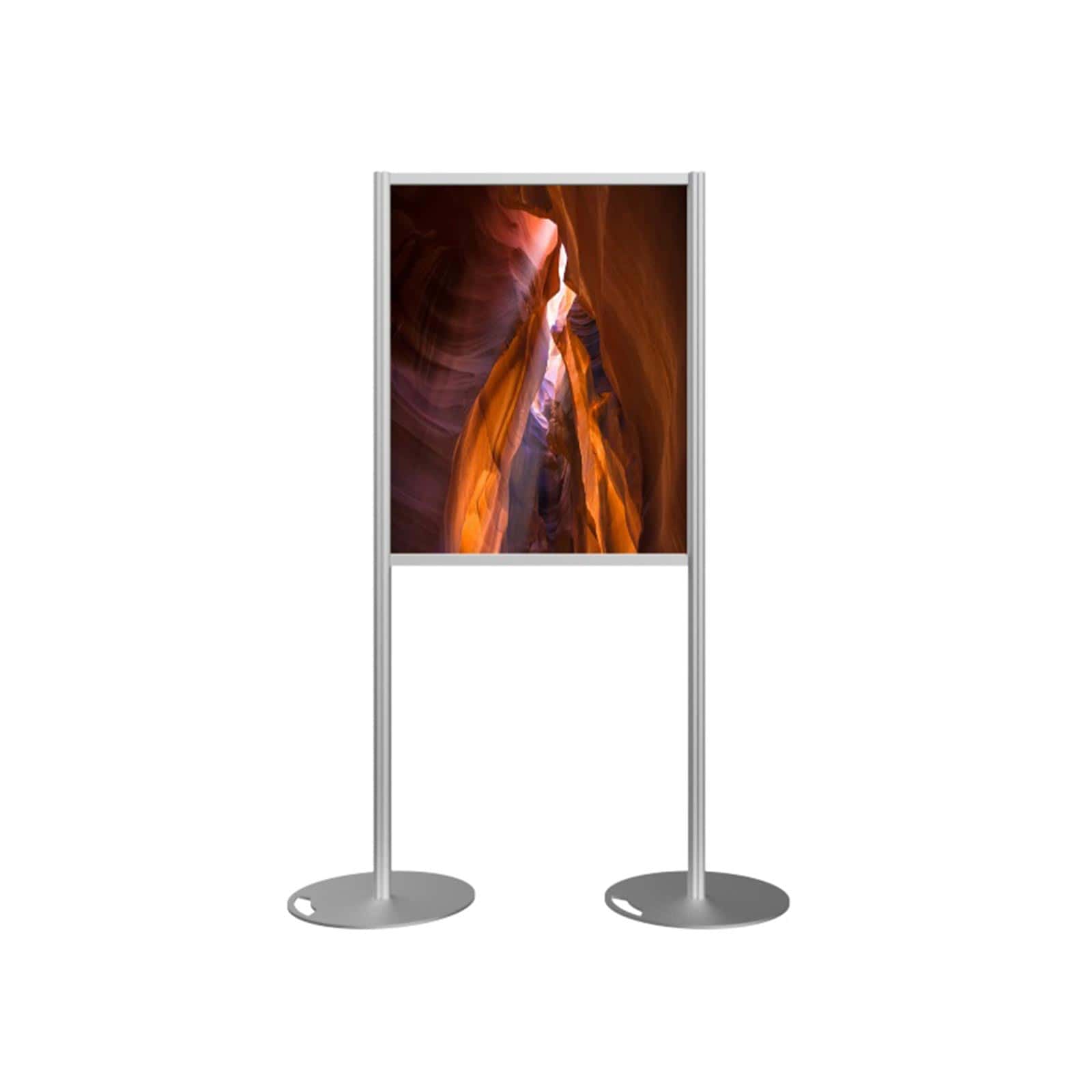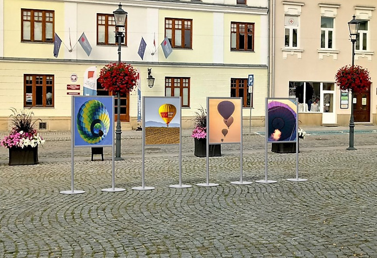 Stojak wystawowy planszowy to nasz najbardziej popularny wolnostojący system do prezentacji wydruków na zewnątrz budynków. W górnej swej części posiada tablicę z białą płytą PCV. Płytę tą można zadrukować lub umieścić nań wydruk na folii samoprzylepnej. Na chwilę obecną druk UV na płycie jest standardem, jeżeli chodzi o sposób ekspozycji.