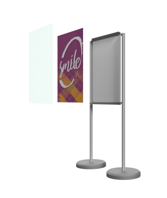 • solidny stojak wystawowy zewnętrzny do prezentacji plakatów w tablicach zatrzaskowych