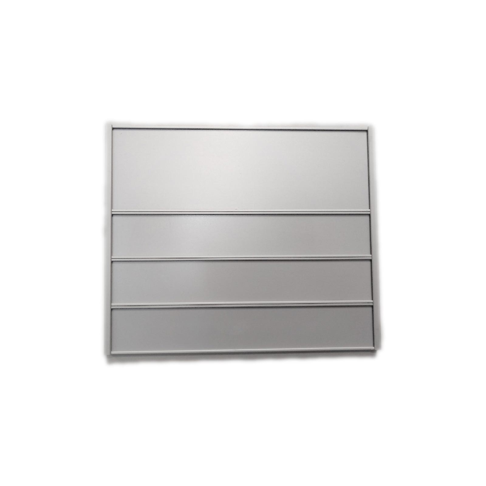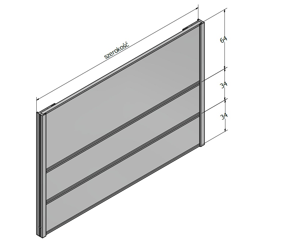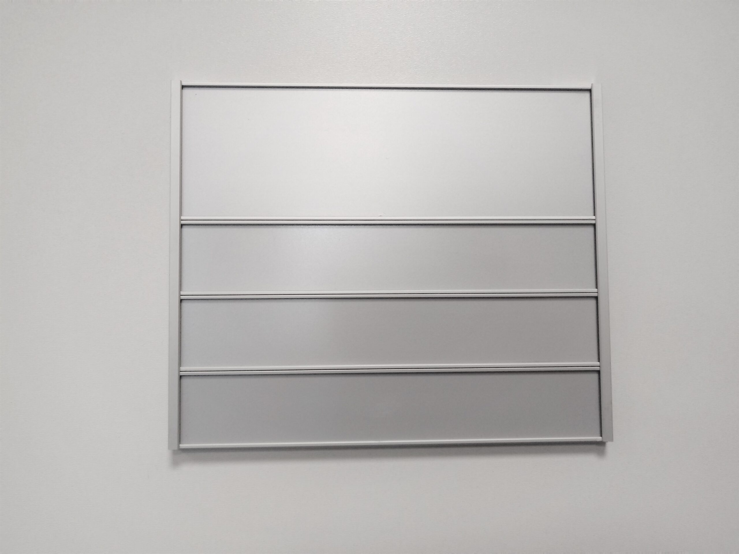Tabliczka przydrzwiowa informacyjna 64+34mm, składa się z dwóch modułów. Pierwszy ma wysokość 64mm, a drugi 34mm. Tabliczkę możemy rozbudować tylko o moduły 34, natomiast moduł 64mm jest jeden. W systemie tym tabliczki umieszczamy w rzędzie – najpierw wsuwamy mniejsze moduły, a całość zamykamy modułem 64mm. Większy moduł wykorzystywany jest najczęściej jako pewnego typu nagłówek, w którym umieścimy logo lub nazwę firmy. Mniejsze moduły służą przede wszystkim do przedstawienia imienia i nazwiska pracownika.