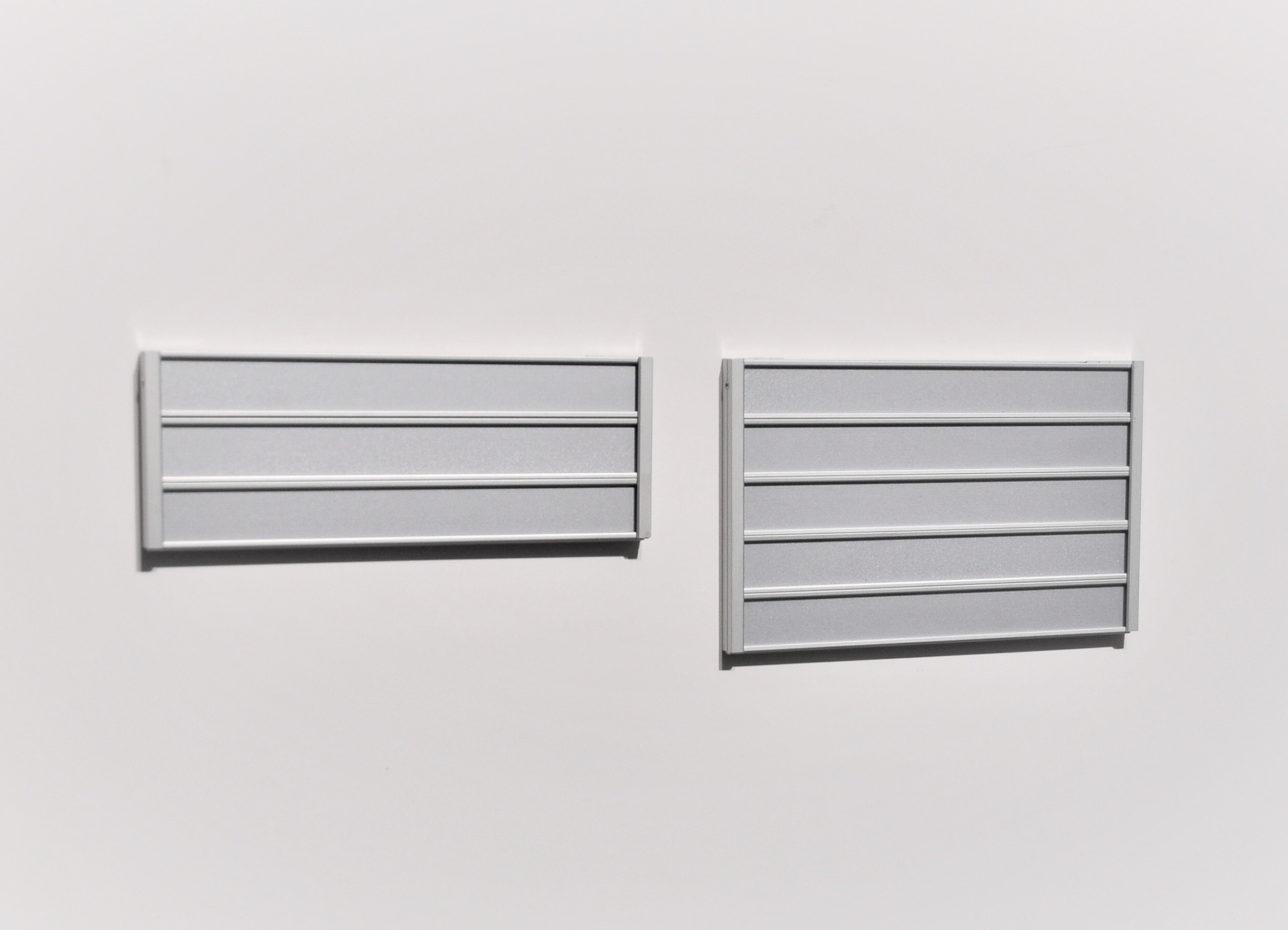 Tabliczki i moduły wykonane są z aluminium anodowanego na kolor srebrny mat. Mocowanie odbywa się za pomocą taśmy samoprzylepnej lub kołków montażowych.