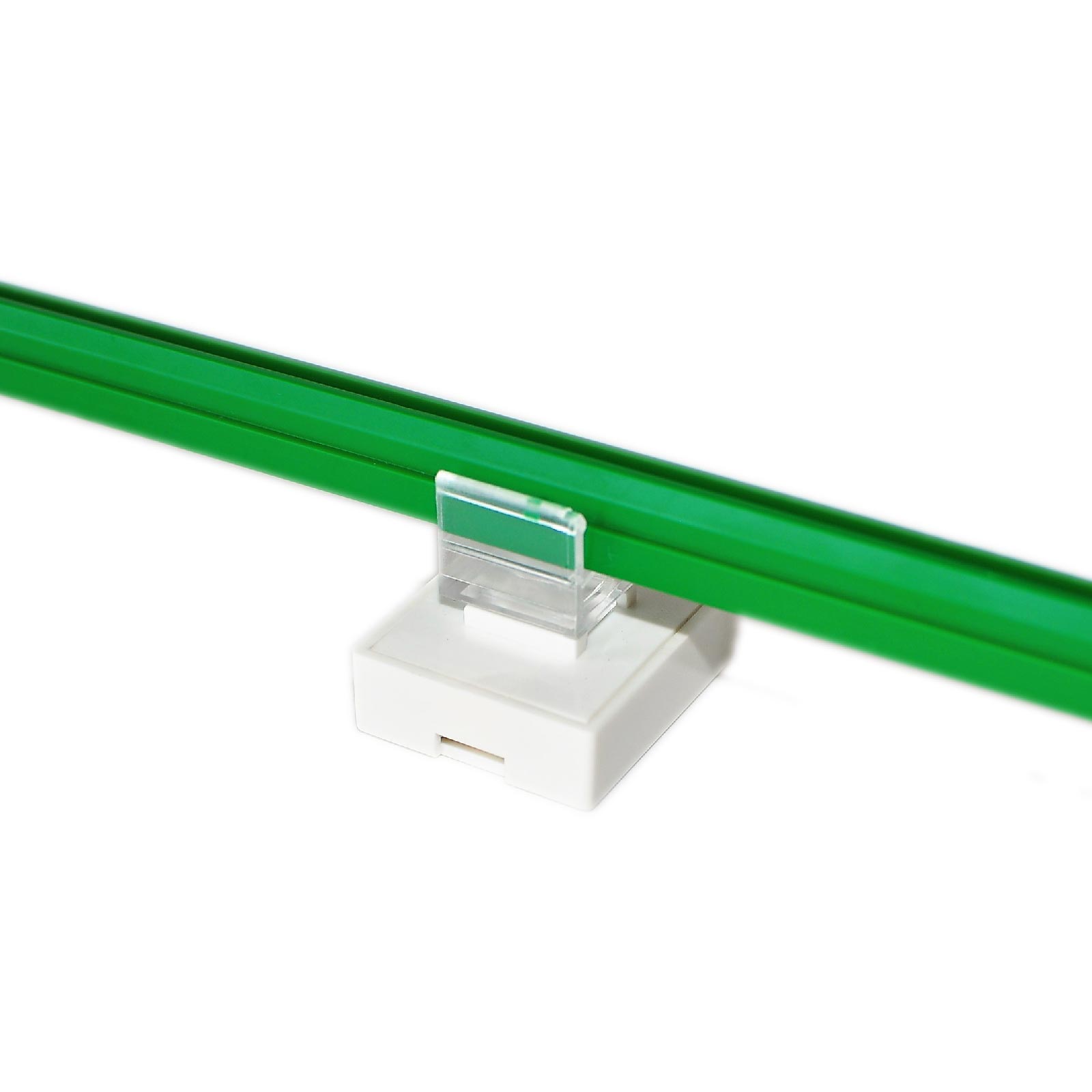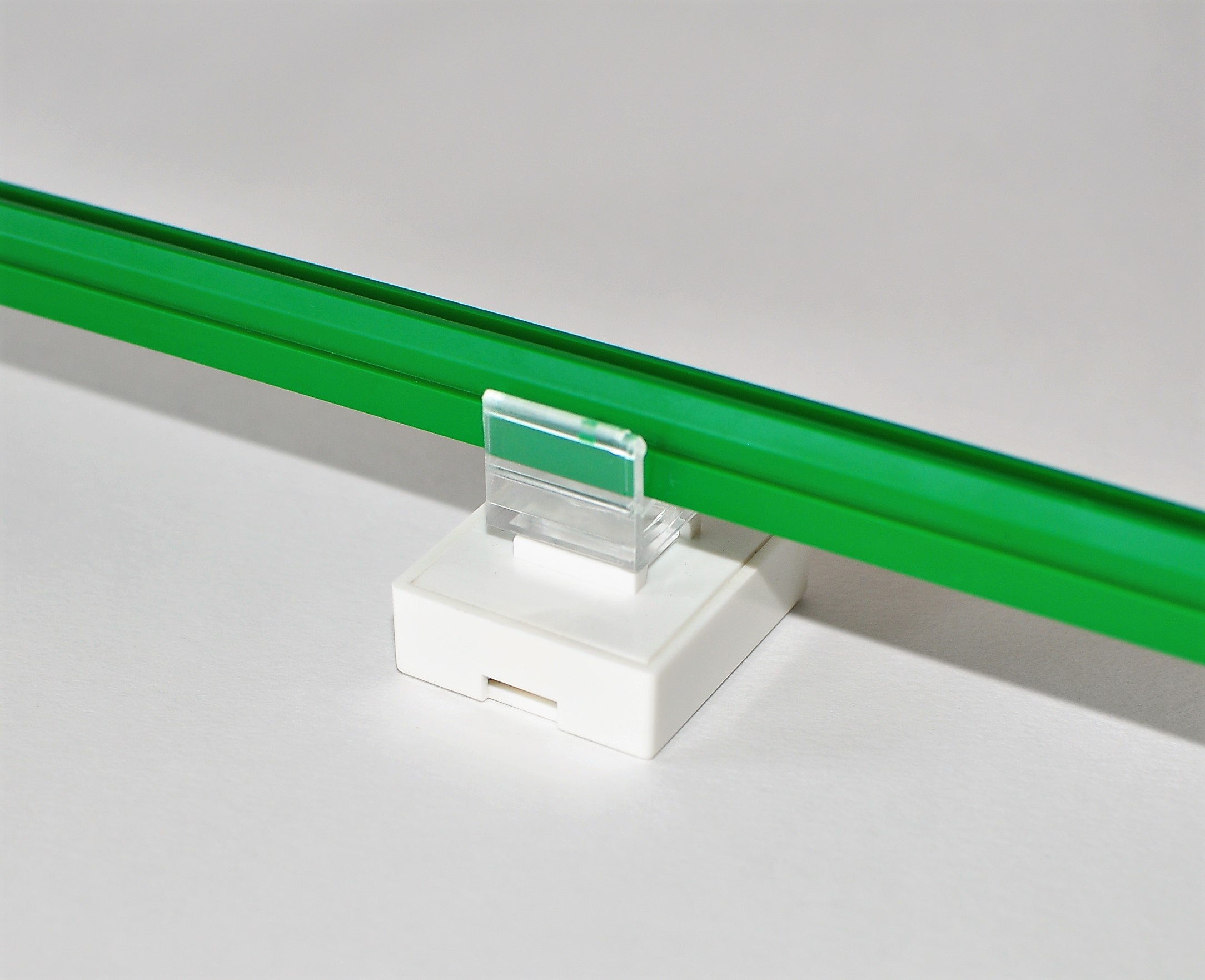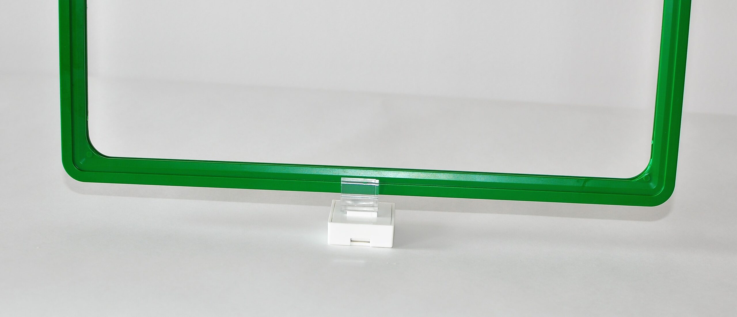 Kwadratowy uchwyt magnetyczny służy do montażu ramki plastikowej prostopadle do powierzchni. Wykonany jest z białego tworzywa sztucznego i bezbarwnego adaptera, w którym mocujemy ramkę.